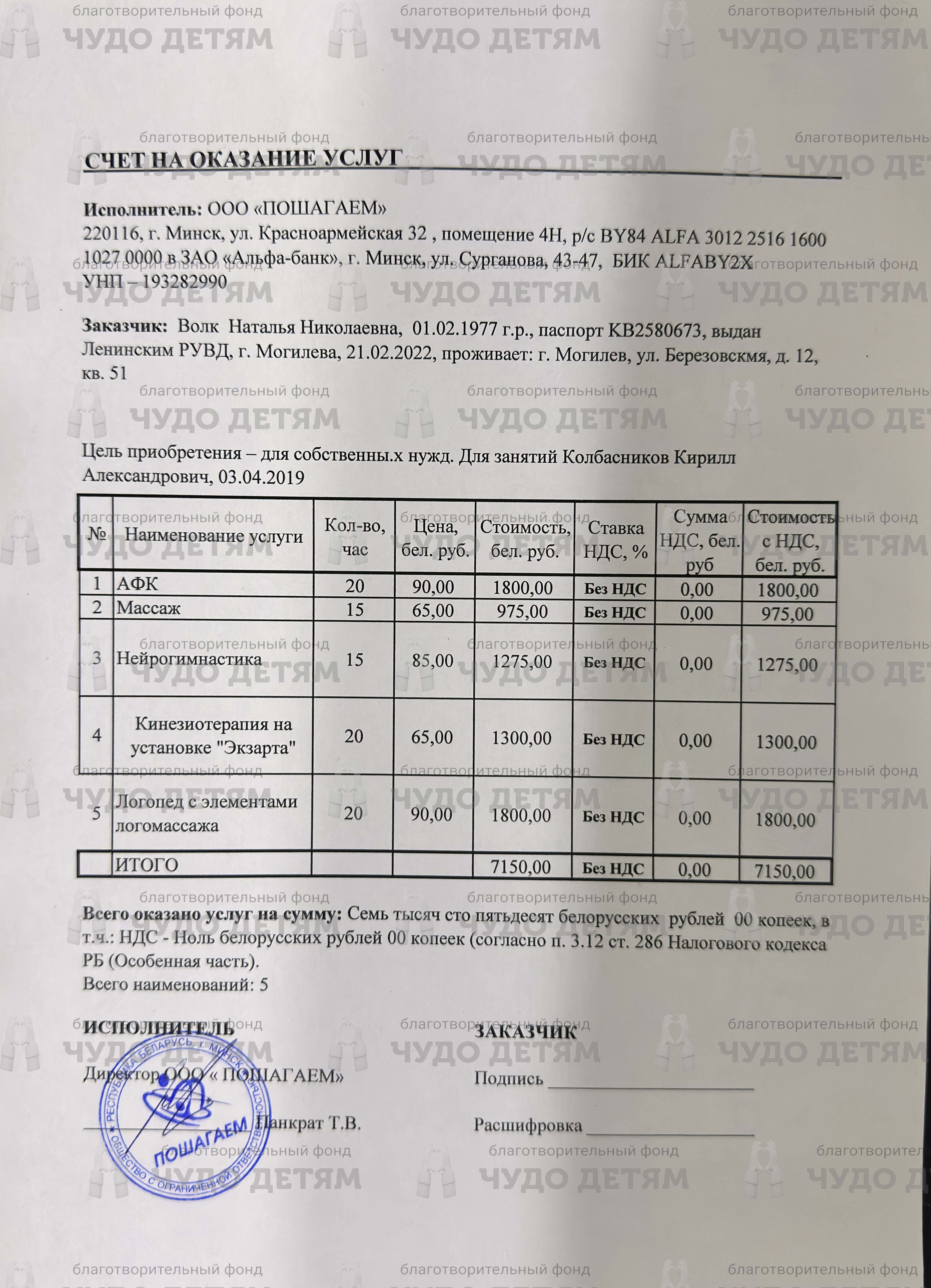 Но реабилитация и работа со специалистами необходимы постоянно. Мы обратились в центр «Пошагаем» - они готовы с нами заниматься, но стоимость занятий очень высокая, и для нашей семьи собрать такие средства тяжело (тем более, что у нас есть ещё дети). Нам посоветовали обратиться за помощью в благотворительный фонд.