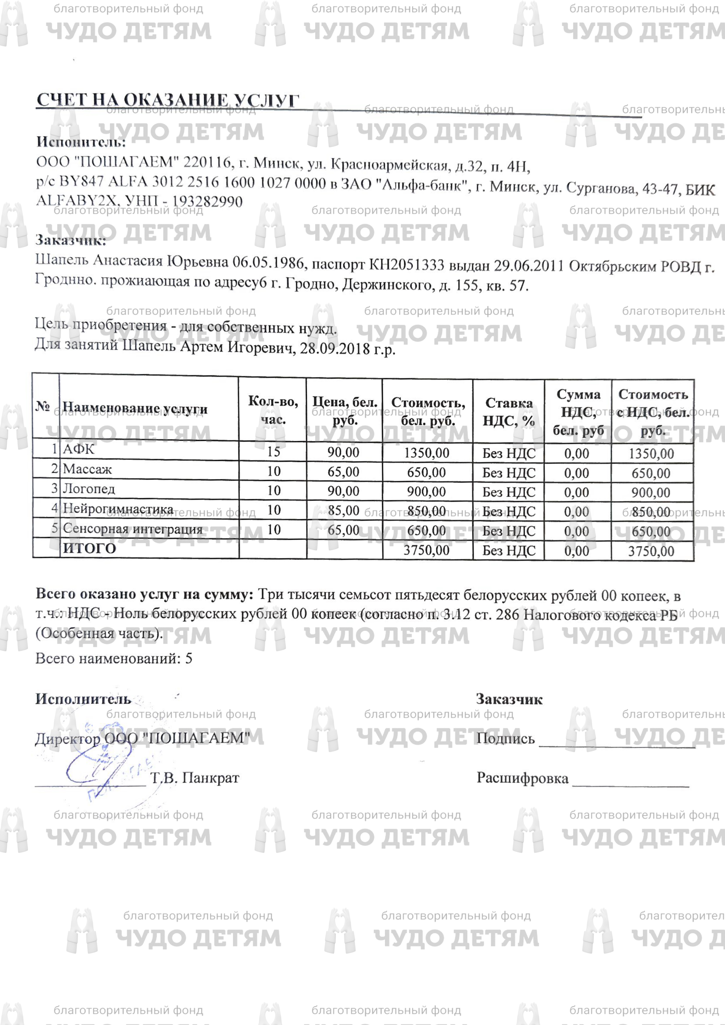 Открыт сбор средств на реабилитацию на сумму 3750 byn для Шапель Артёма. Артём живёт с атоническо-астатическим синдромом вследствие раннего поражения головного мозга. Диагноз был поставлен после МРТ: выявлена выраженная атрофия мозжечка. Артём проходит регулярную реабилитацию. Последний курс — в центре «Пошагаем» (Минск). Чтобы продолжить занятия ему нужна помощь. Сумма сбора: 3750 BYN Средства пойдут на АФК, массаж, нейрогимнастику, логопеда и сенсорную интеграцию.