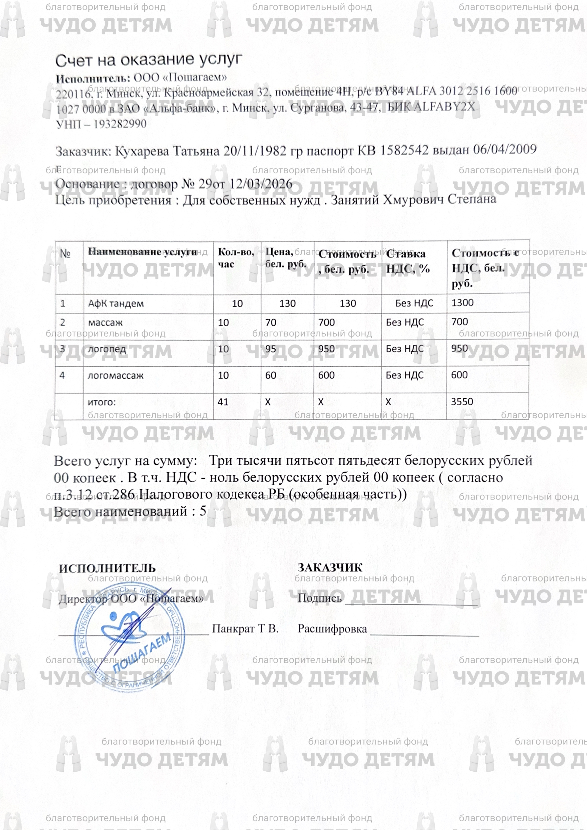 Счёт: BY15 AKBB 3134 0000 0313 4007 0000