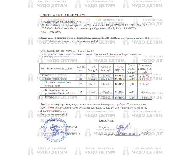 Счёт: BY19 АКВВ 3134 0000 0298 5007 0000