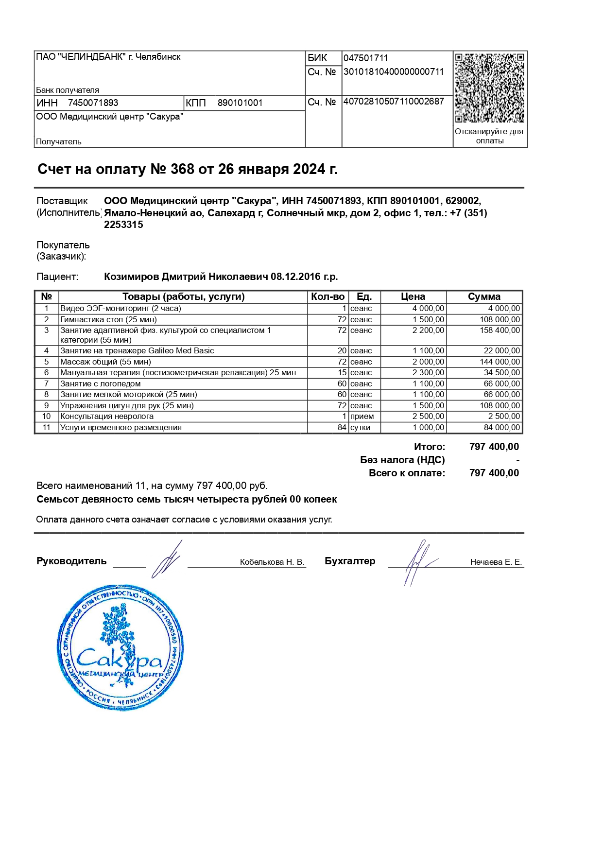 Частичная оплата курса реабилитации.