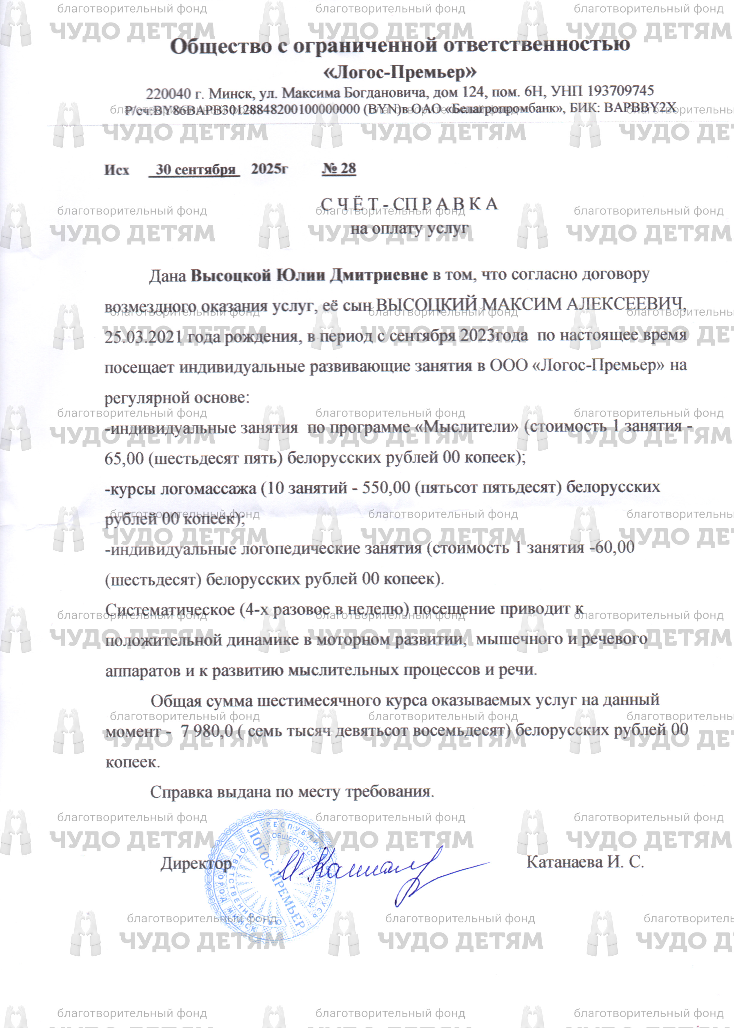 Открыт сбор средств на реабилитацию на сумму 7980 byn для Высоцкого Максима. В рамках курса реабилитации предусмотрены индивидуальные занятия по программам: "Мыслители", курсы логомассажа, логопедические занятия.