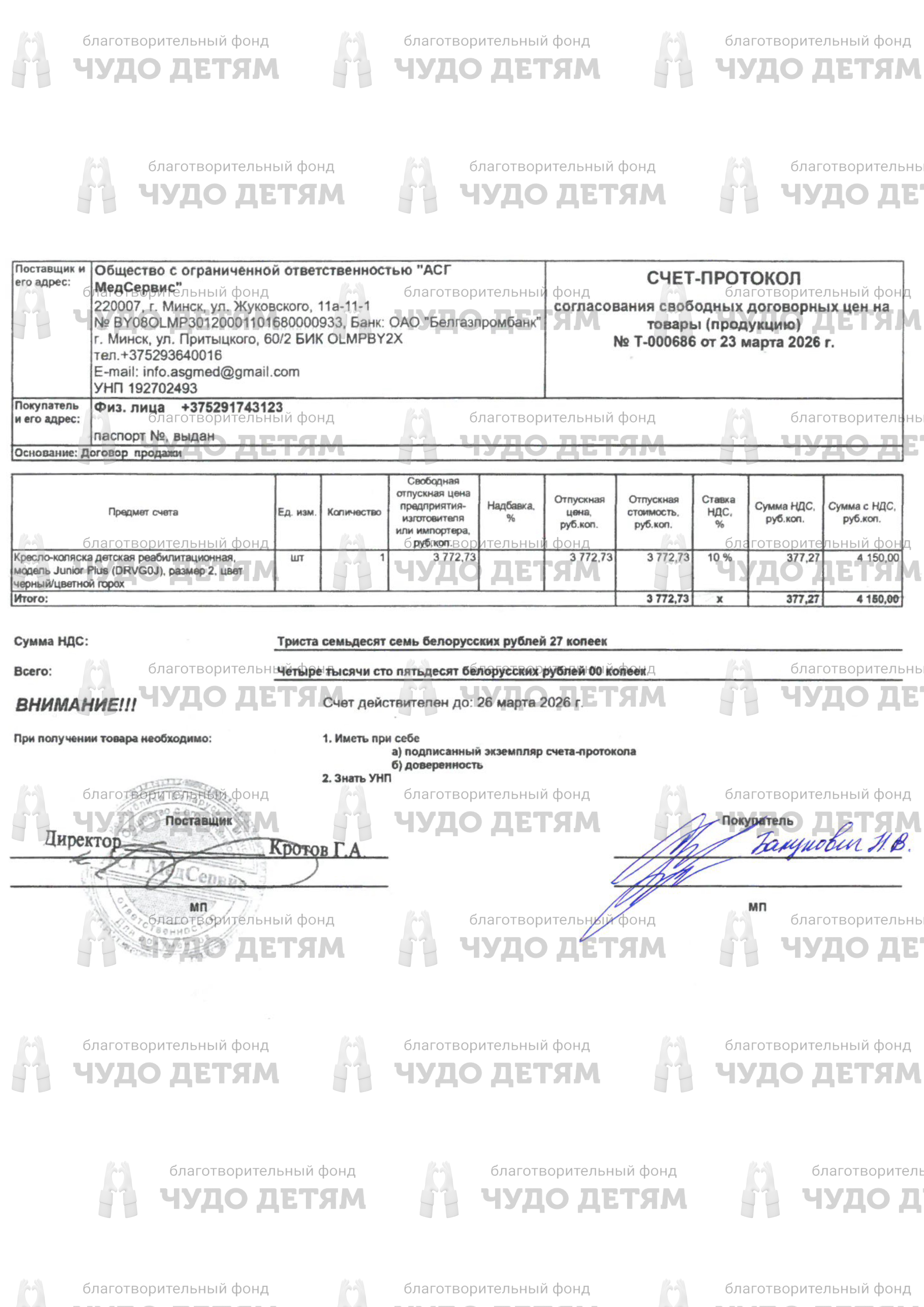Открыт сбор на приобретение детской реабилитационной кресло-коляски стоимостью 4 150 BYN для Серчени Анны.